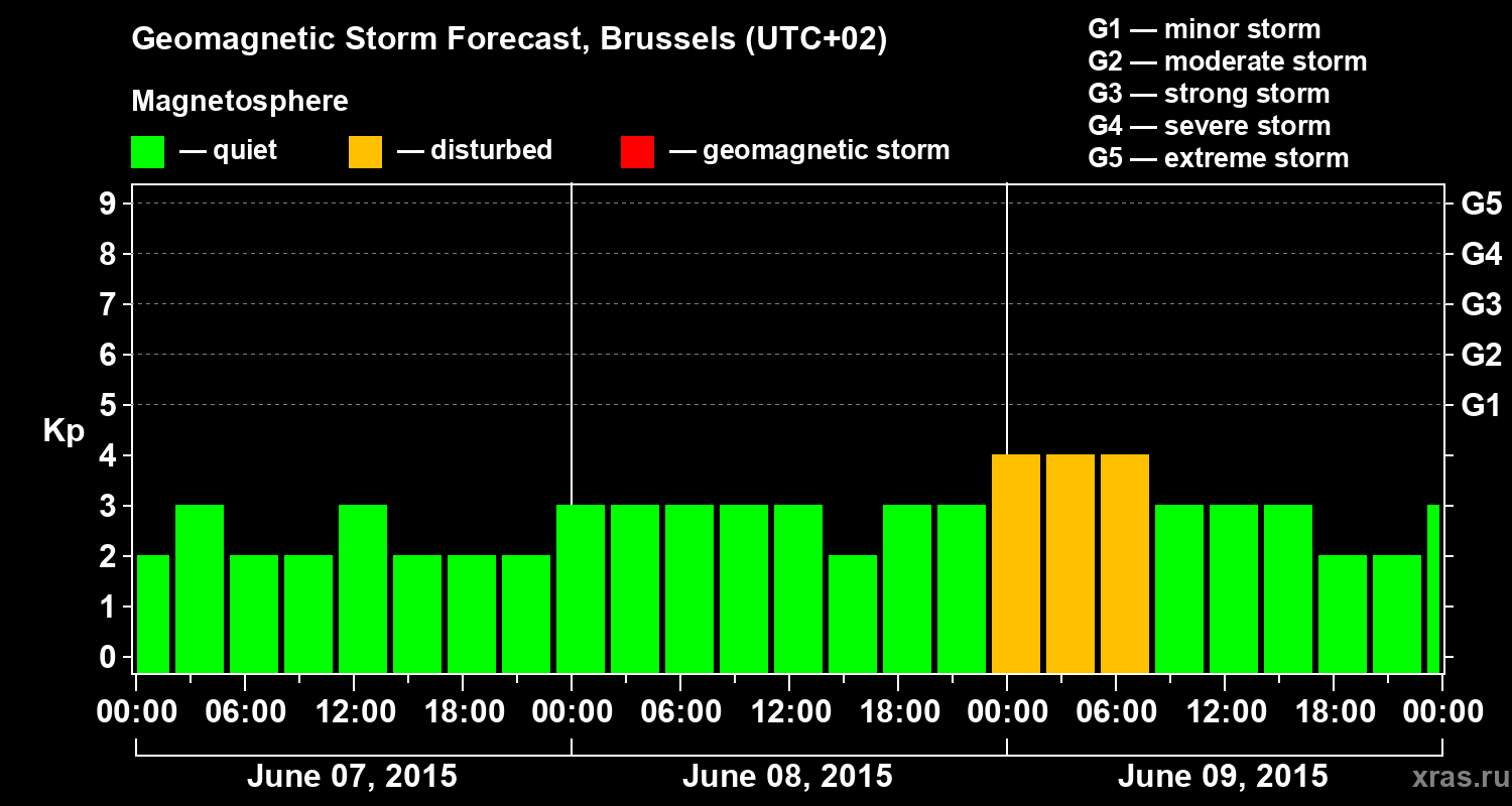 Geomagnetic storm forecast in Brussels for Jun 07, 2015