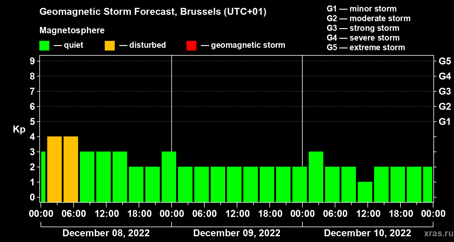 Geomagnetic activity forecast in Brussels — Dec 08, 2022