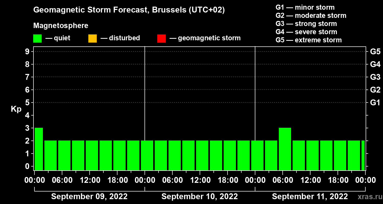 Geomagnetic storm forecast in Brussels for Sep 09, 2022