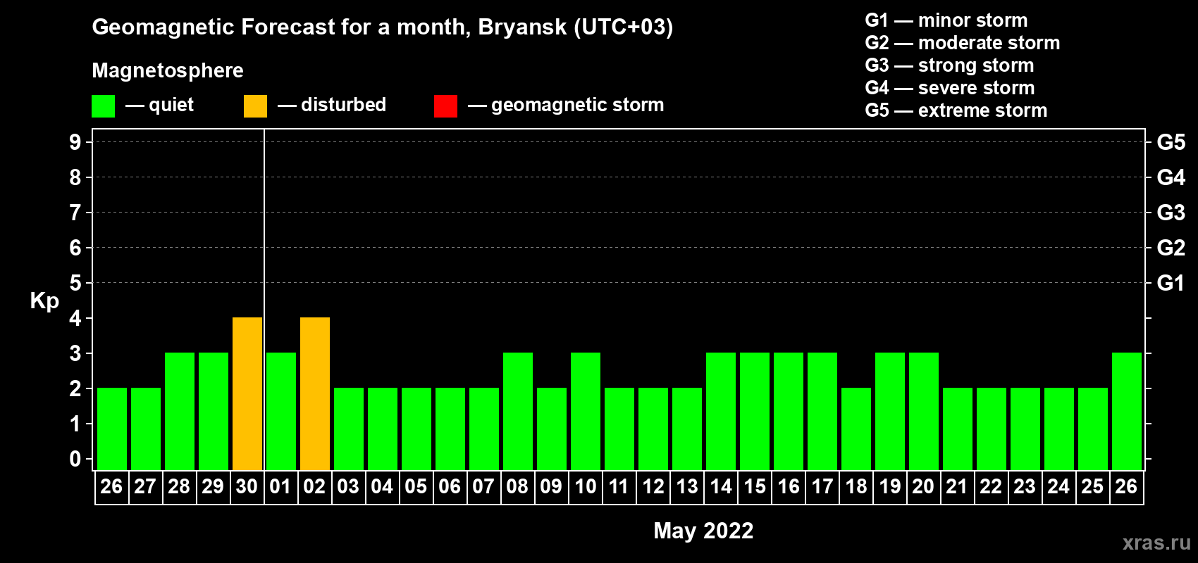 Geomagnetic activity forecast in Bryansk — Apr 26, 2022