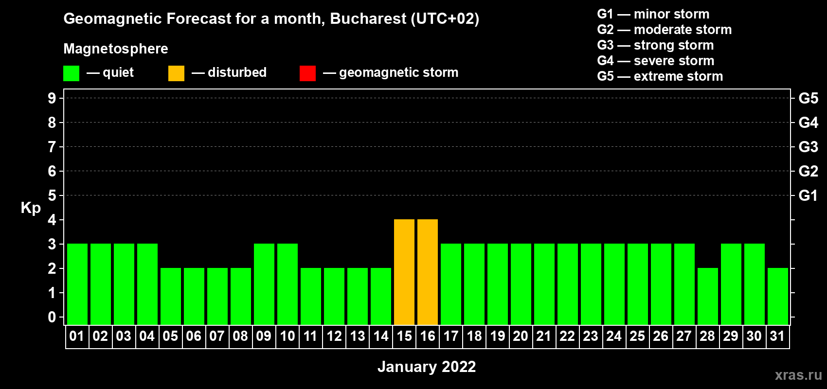 Geomagnetic storm forecast in Bucharest for Jan 01, 2022