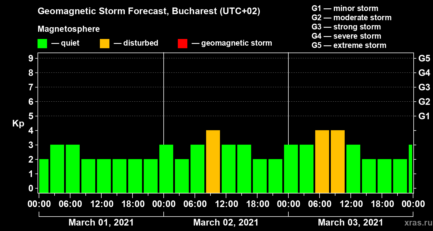 Geomagnetic storm forecast in Bucharest for Mar 01, 2021