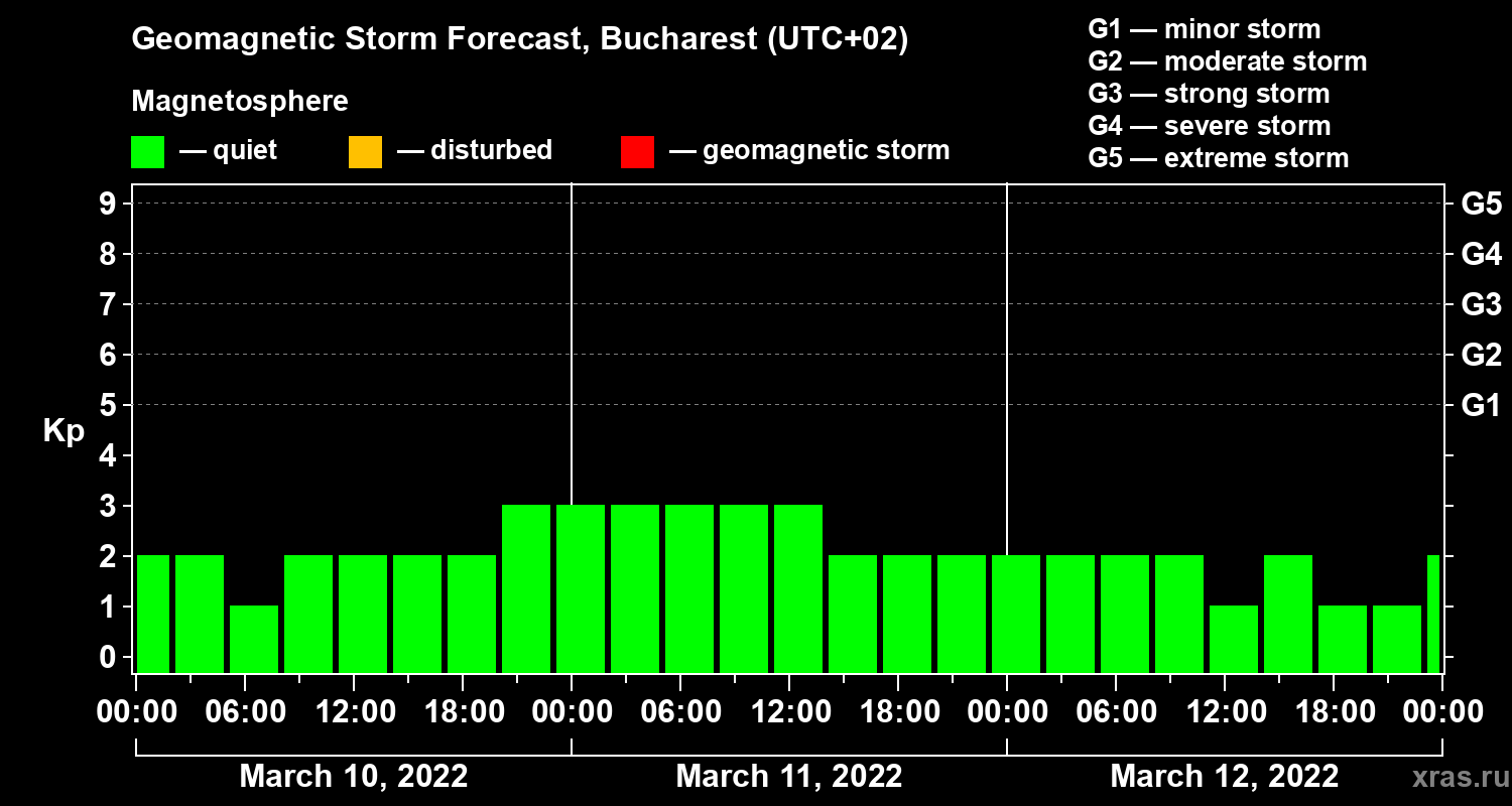 Geomagnetic activity forecast in Bucharest — Mar 10, 2022