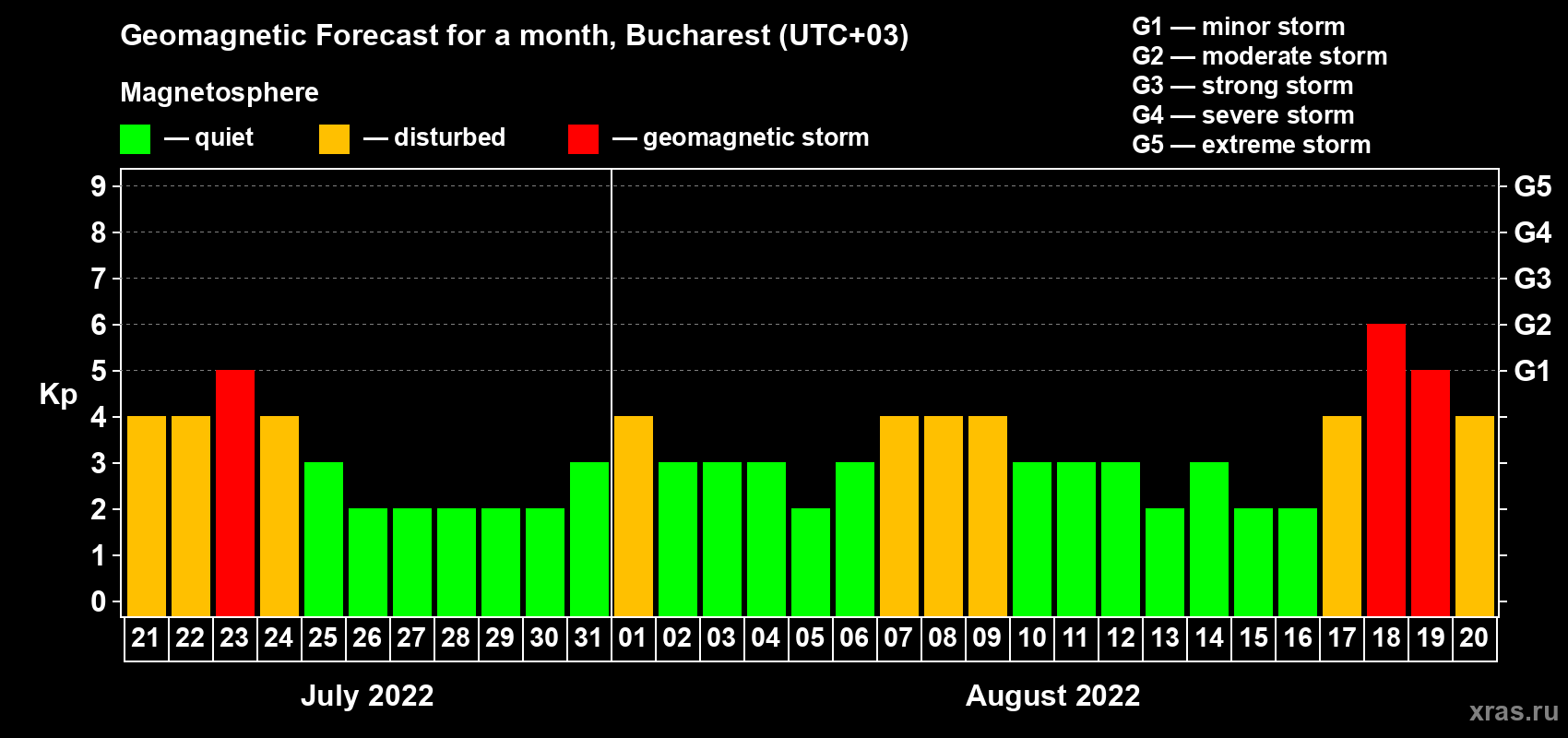 Geomagnetic storm forecast in Bucharest for Jul 21, 2022