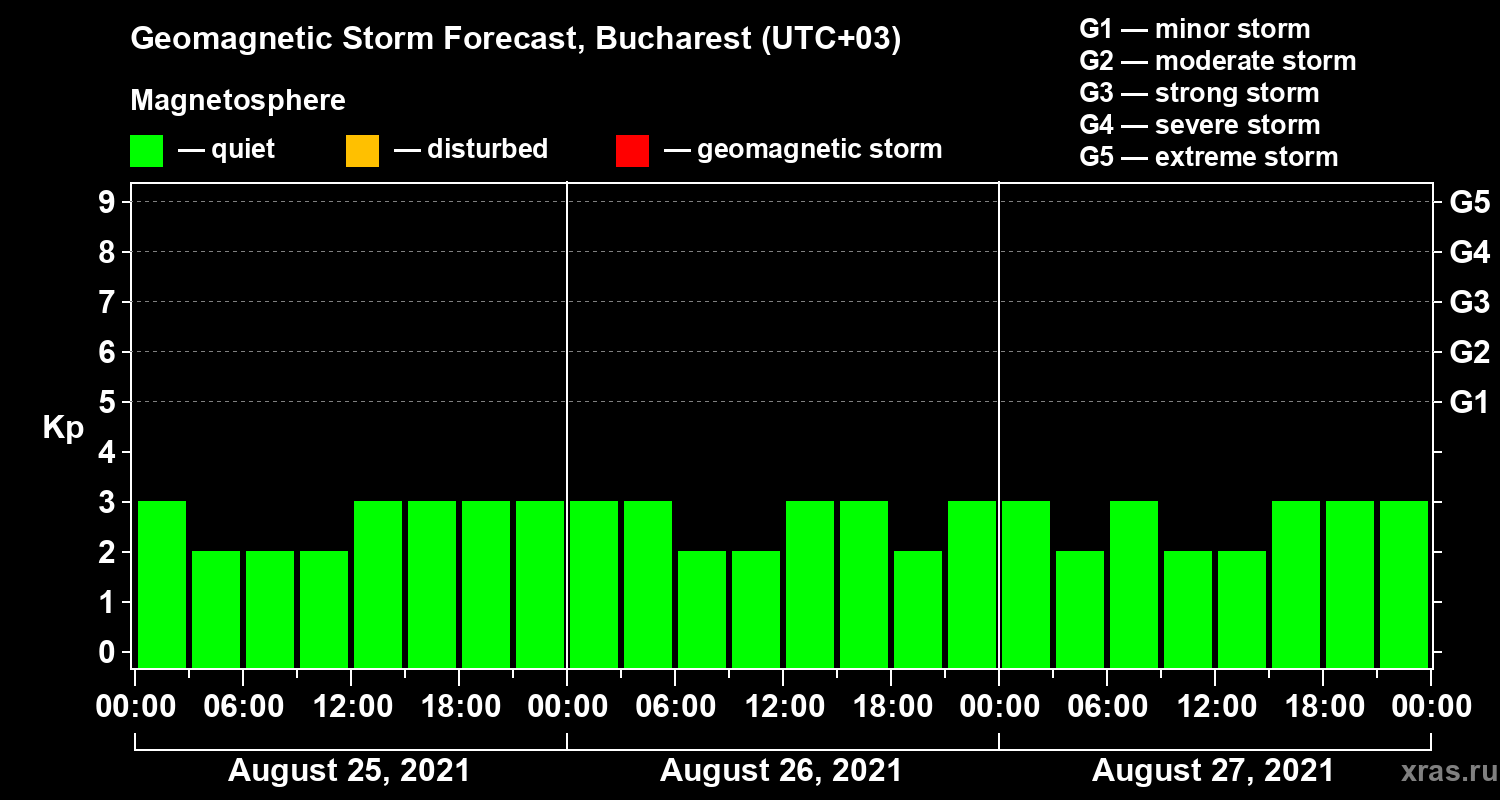Geomagnetic storm forecast in Bucharest for Aug 25, 2021