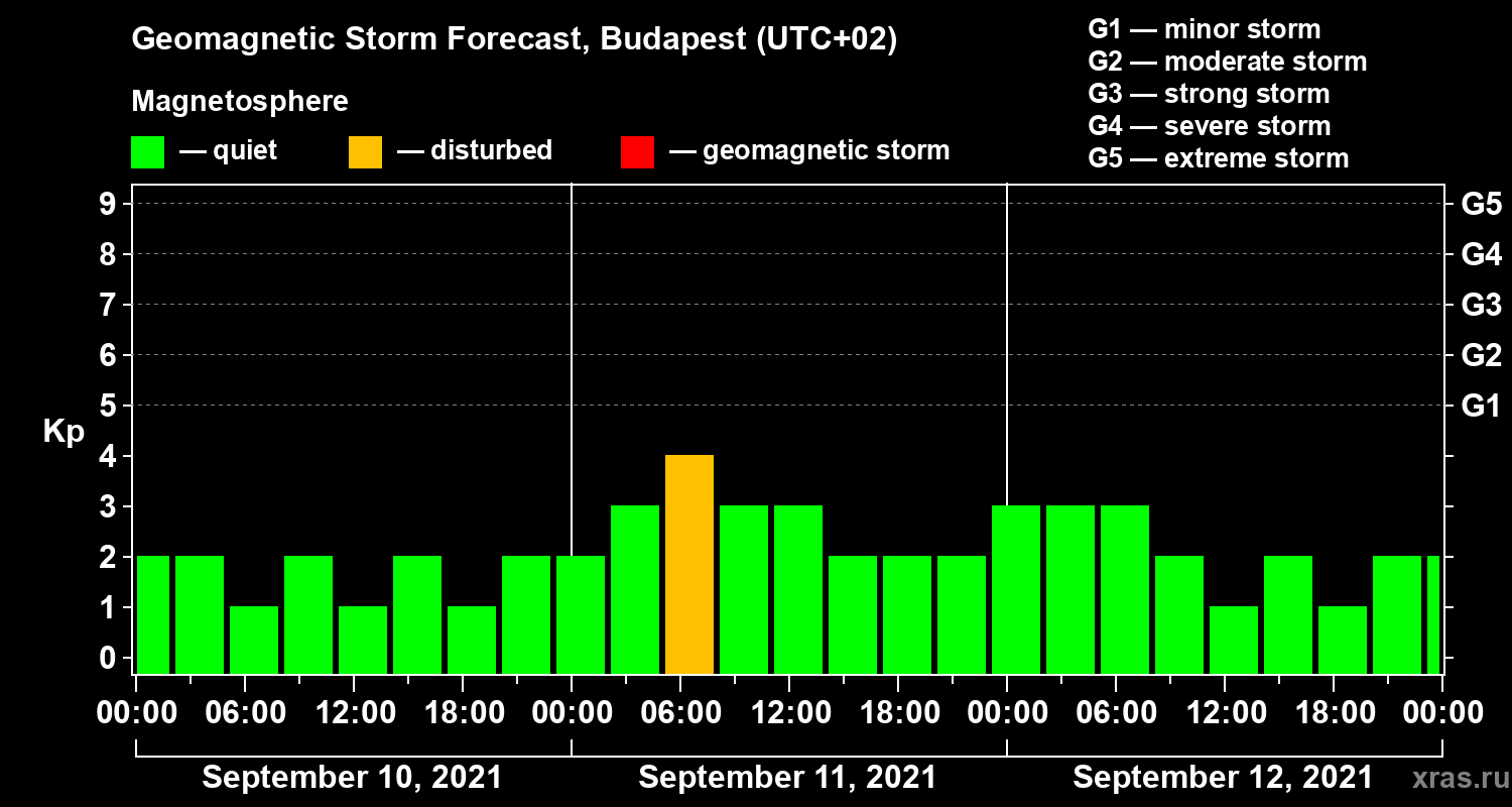 Geomagnetic activity forecast in Budapest — Sep 10, 2021