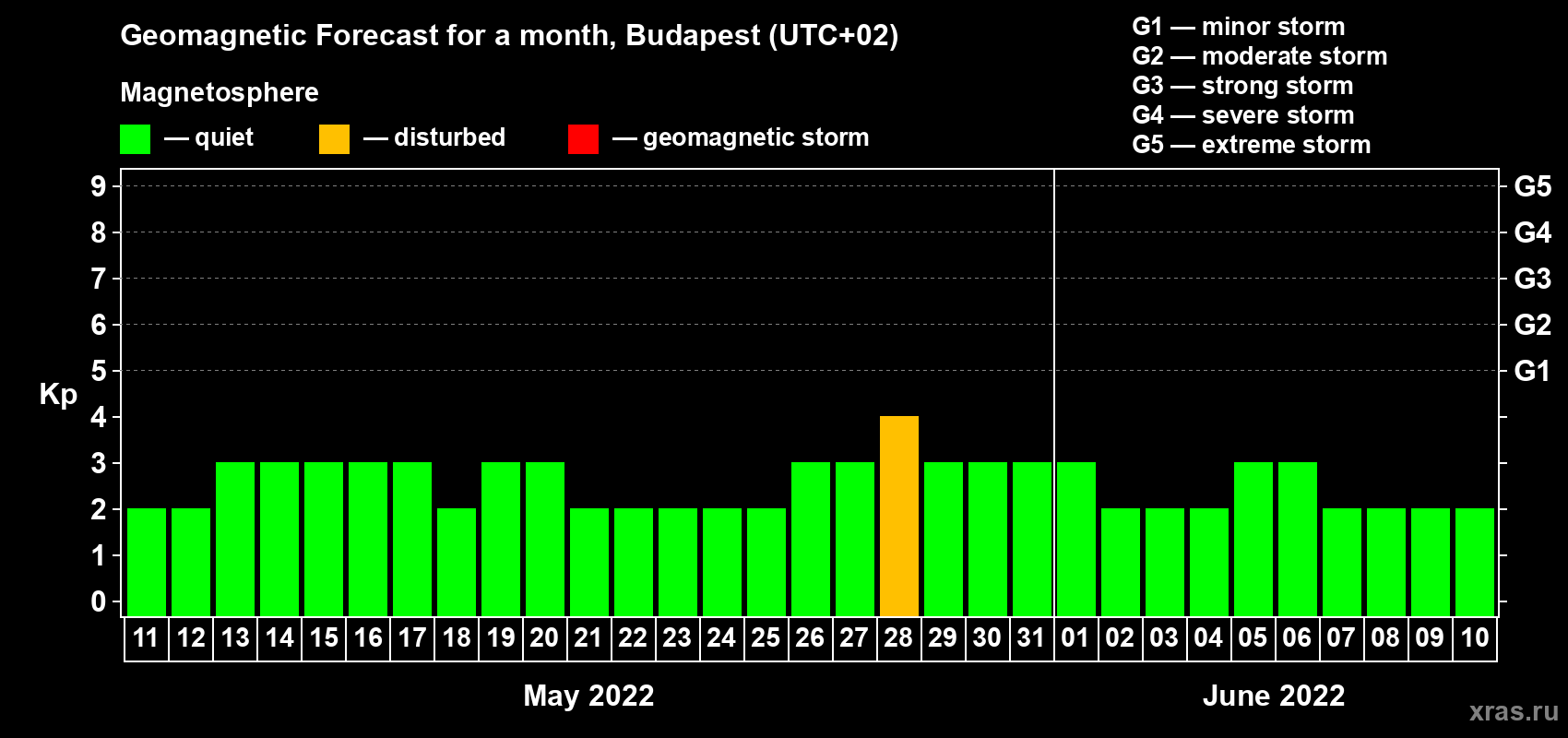Geomagnetic activity forecast in Budapest — May 11, 2022