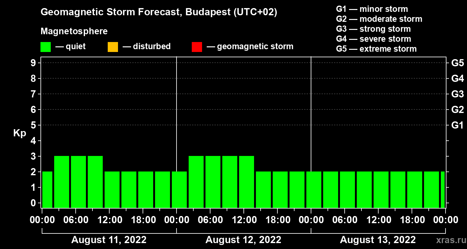 Geomagnetic activity forecast in Budapest — Aug 11, 2022