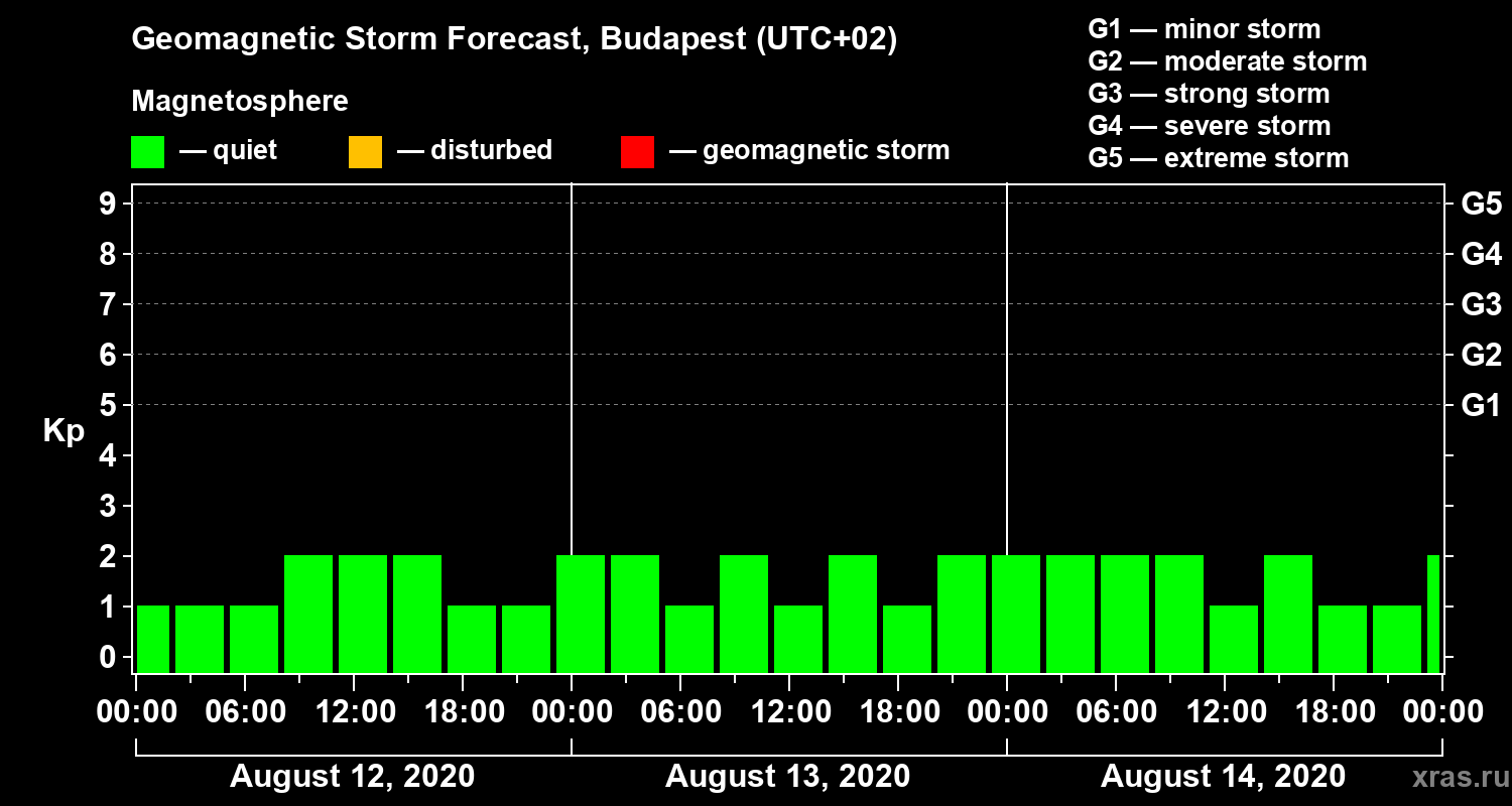 Geomagnetic activity forecast in Budapest — Aug 12, 2020