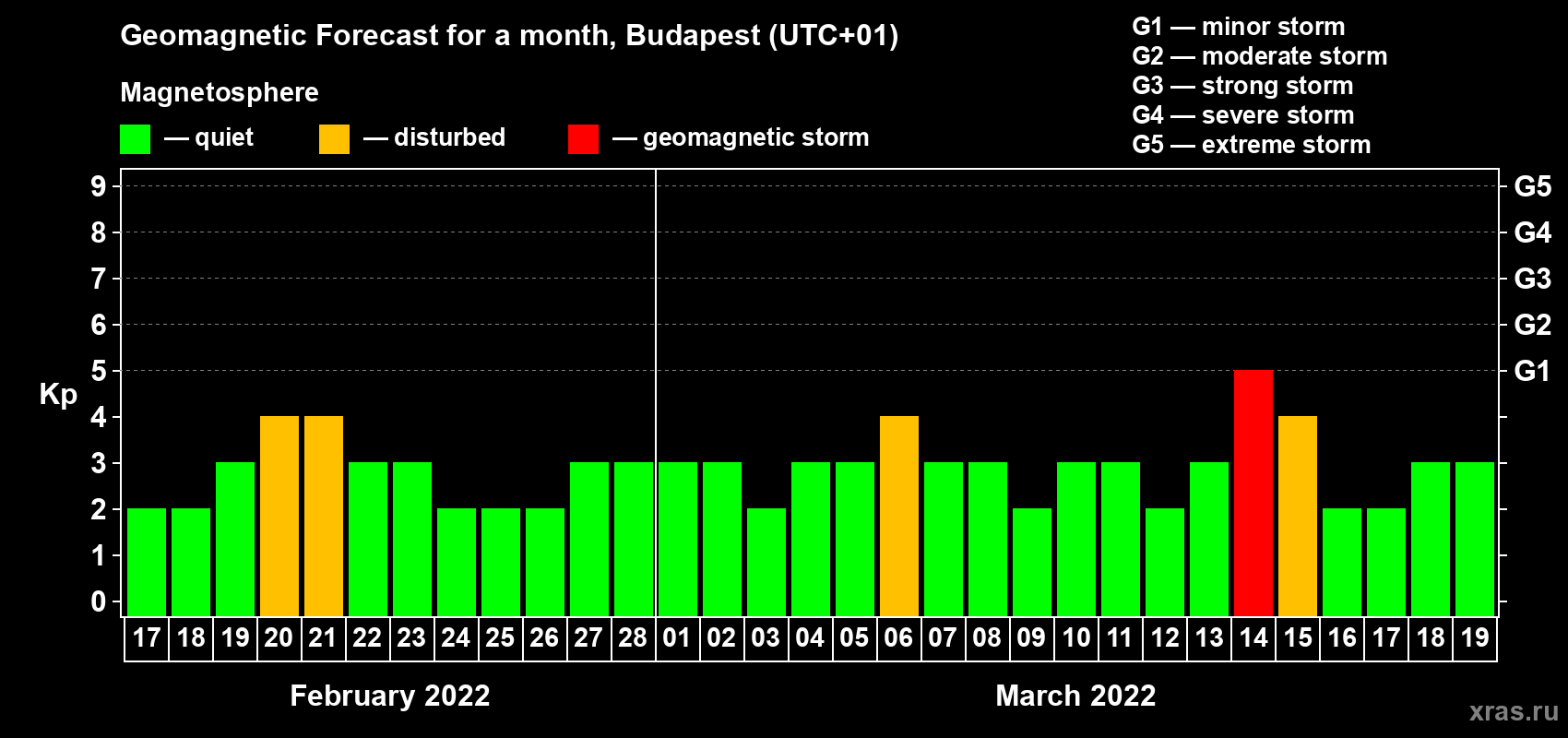 Geomagnetic activity forecast in Budapest — Feb 17, 2022