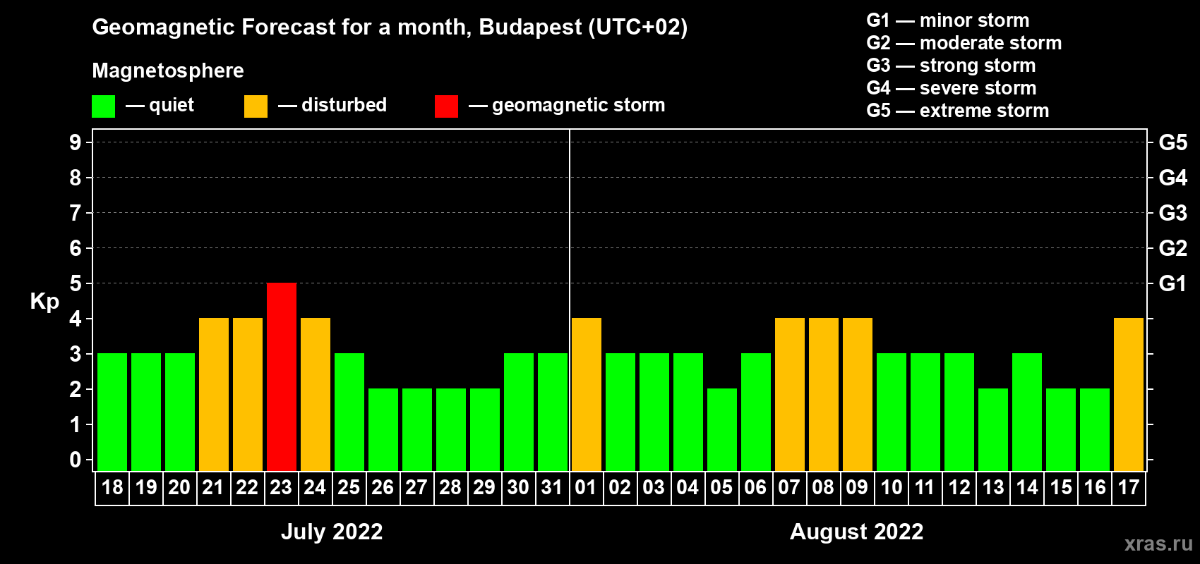 Geomagnetic storm forecast in Budapest for Jul 18, 2022