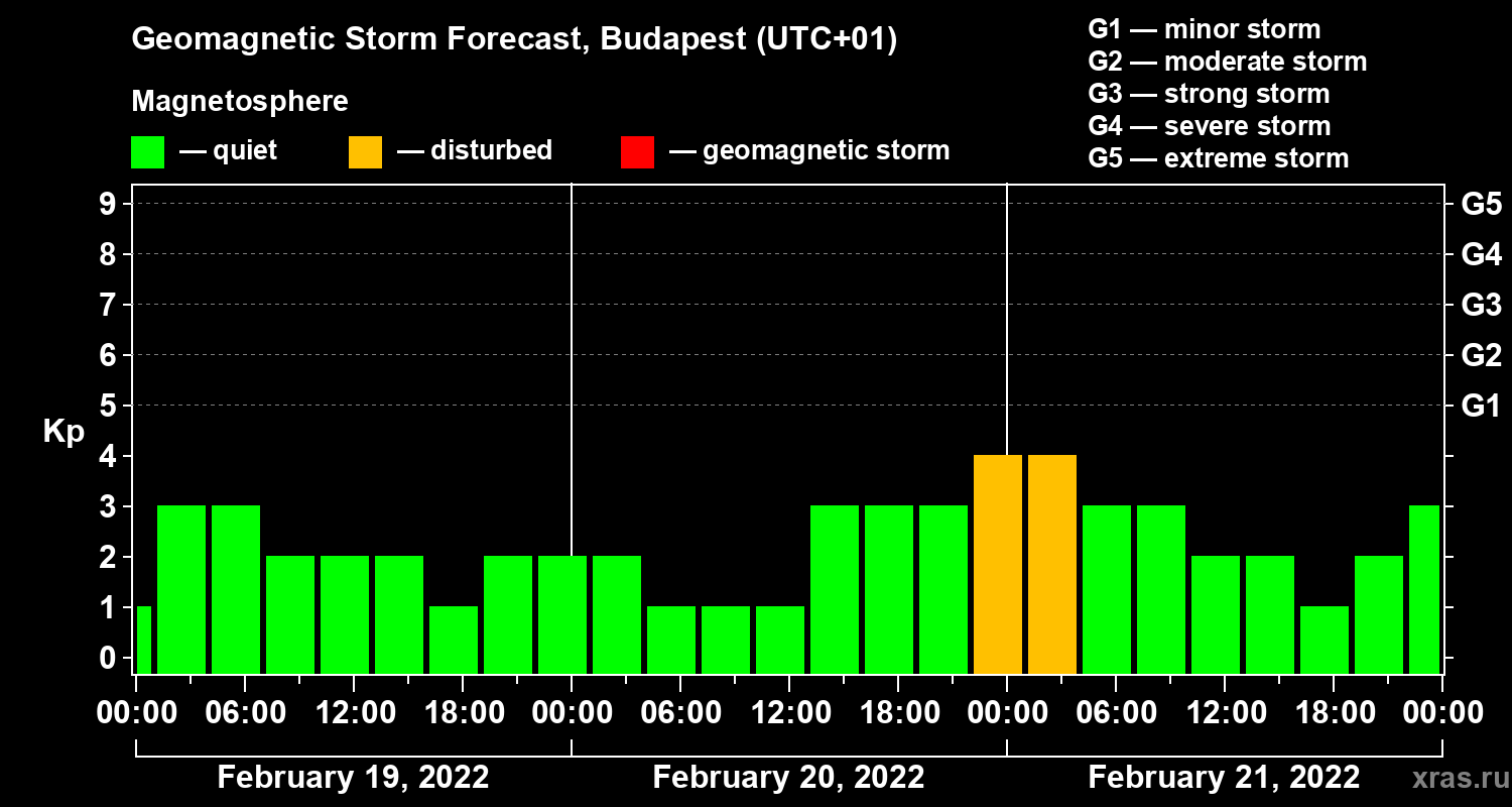Geomagnetic activity forecast in Budapest — Feb 19, 2022