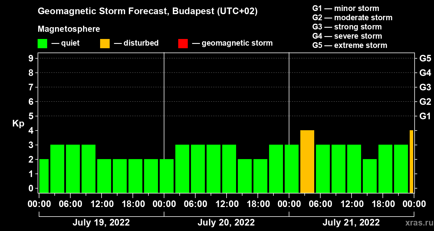 Geomagnetic activity forecast in Budapest — Jul 19, 2022