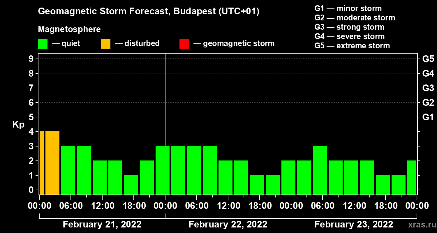 Geomagnetic activity forecast in Budapest — Feb 21, 2022