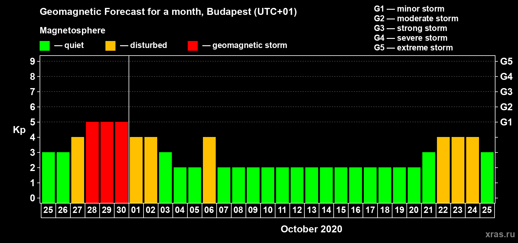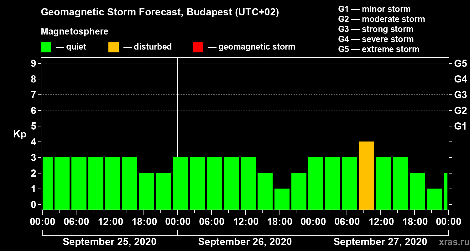 Geomagnetic activity forecast in Budapest — Sep 25, 2020