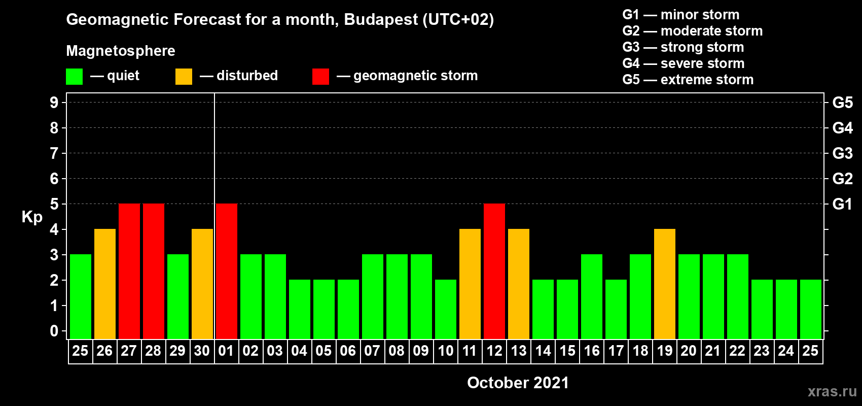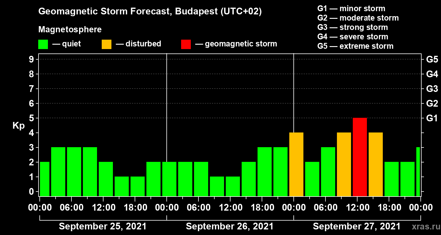 Geomagnetic activity forecast in Budapest — Sep 25, 2021