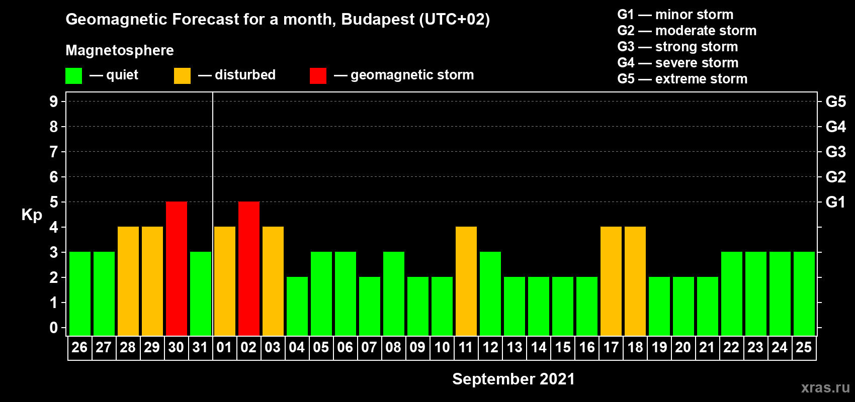 Geomagnetic activity forecast in Budapest — Aug 26, 2021