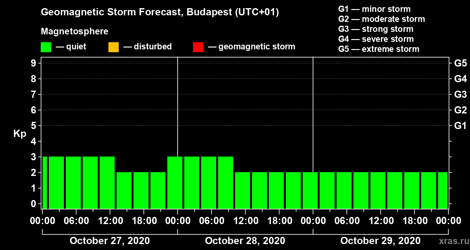 Geomagnetic storm forecast in Budapest for Oct 27, 2020