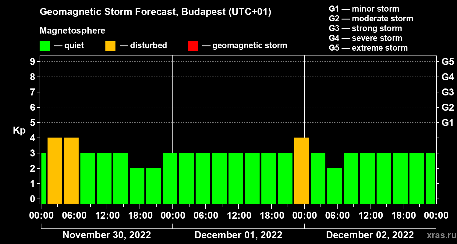 Geomagnetic activity forecast in Budapest — Nov 30, 2022
