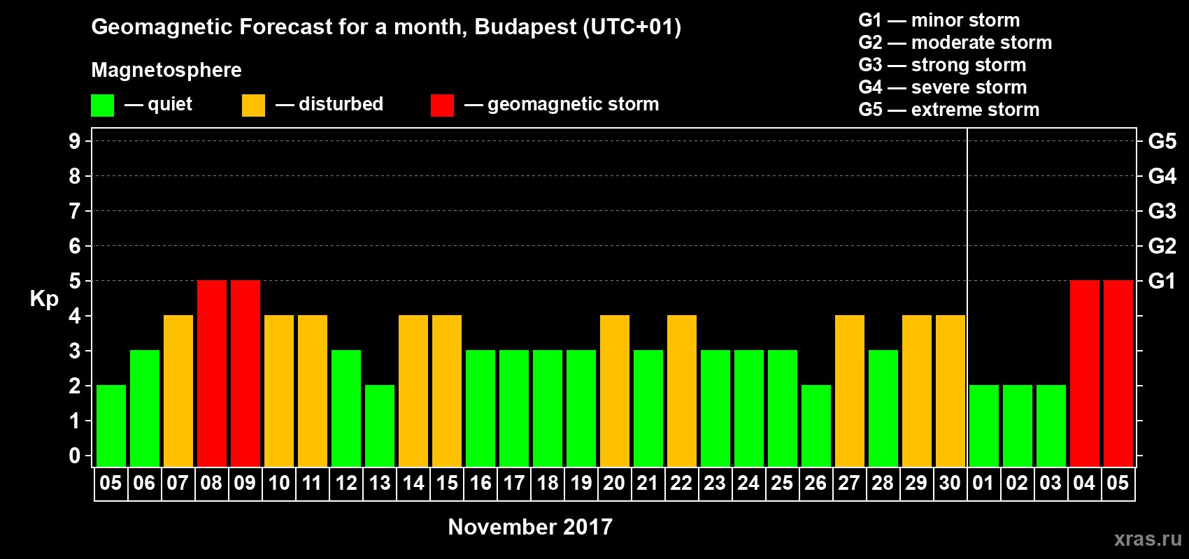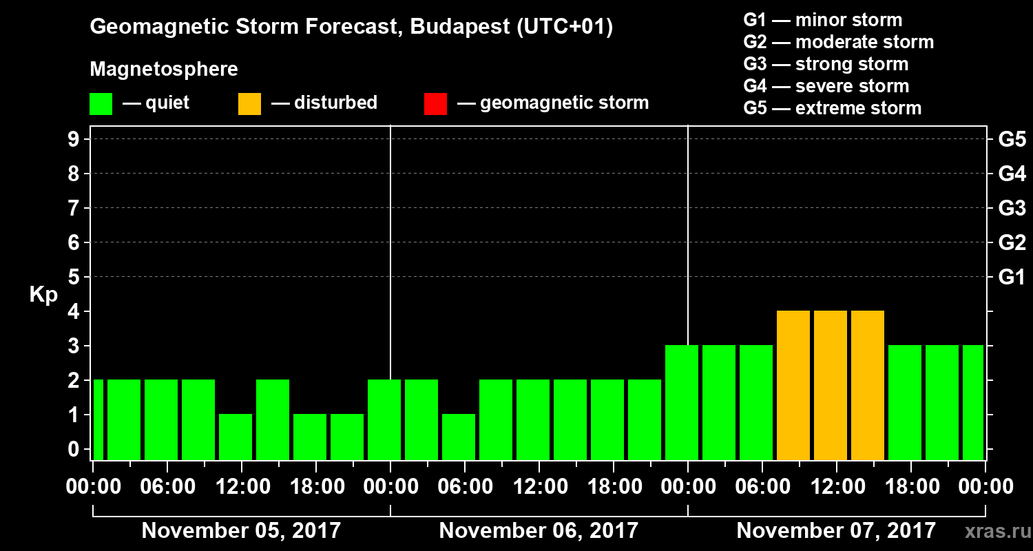 Geomagnetic storm forecast in Budapest for Nov 05, 2017