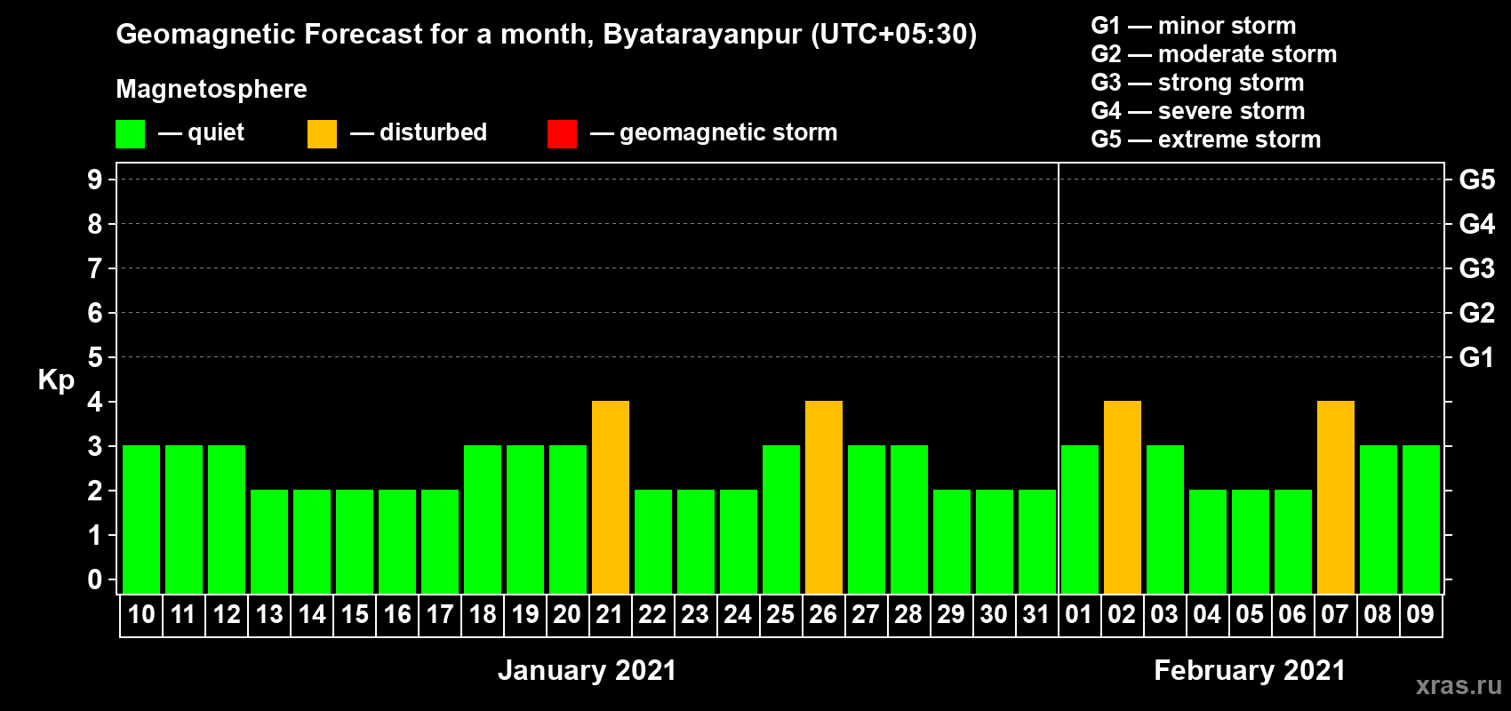 Geomagnetic storm forecast in Byatarayanpur for Jan 10, 2021