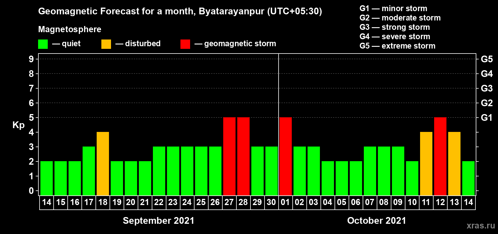 Geomagnetic storm forecast in Byatarayanpur for Sep 14, 2021