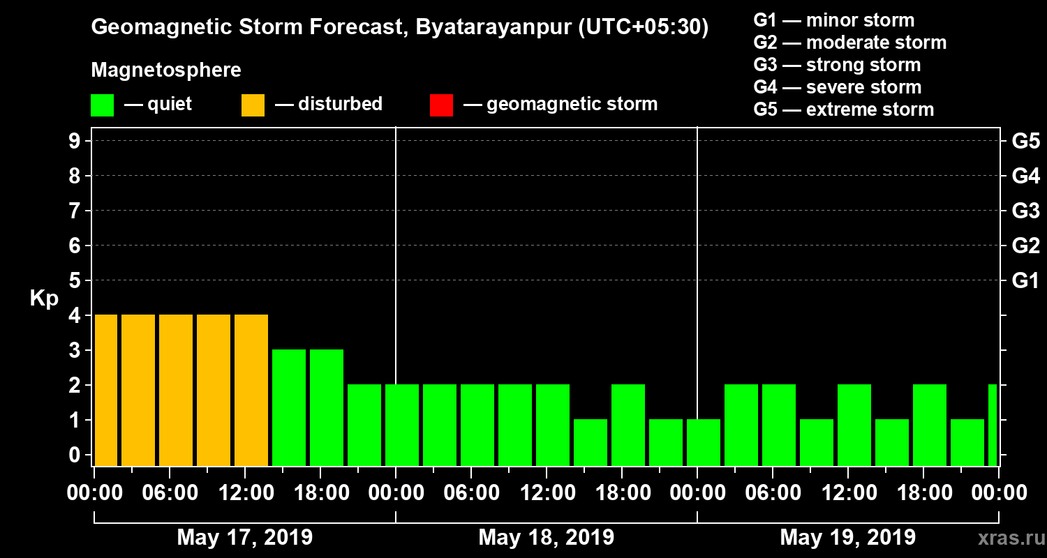 Geomagnetic storm forecast in Byatarayanpur for May 17, 2019