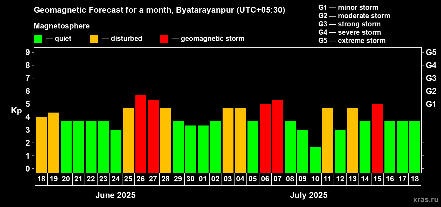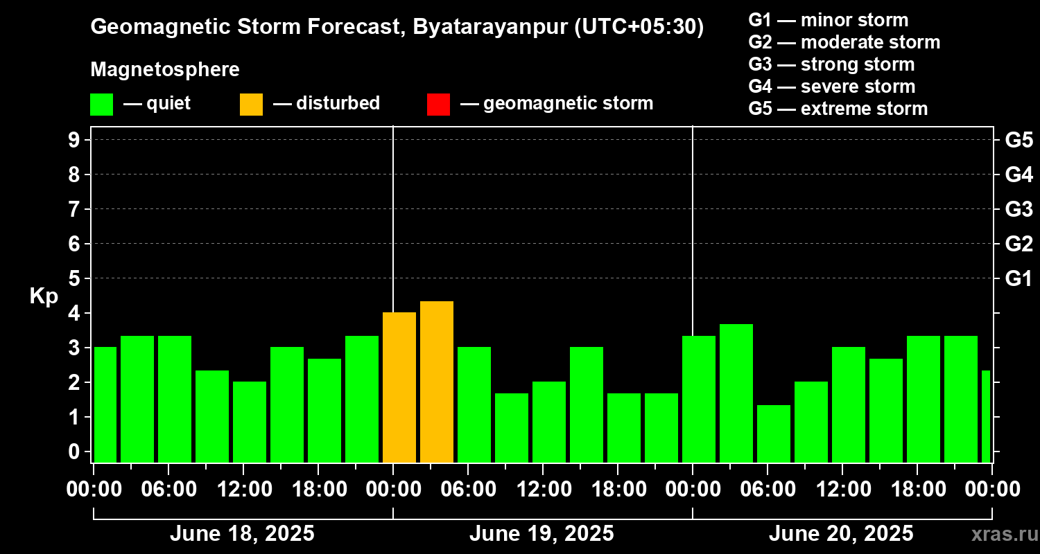 Geomagnetic storm forecast in Byatarayanpur for Jun 18, 2025