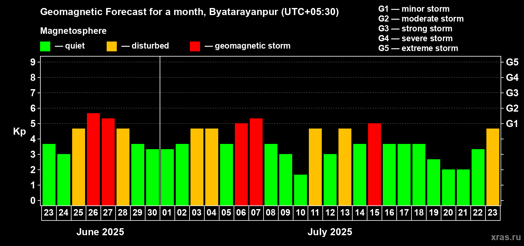 Geomagnetic storm forecast in Byatarayanpur for Jun 23, 2025