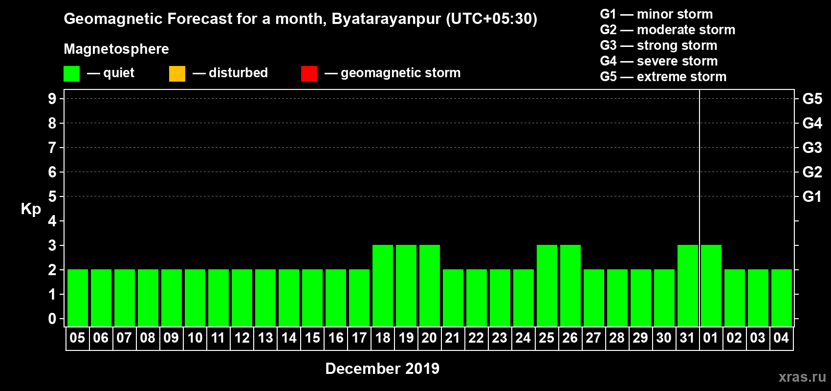 Geomagnetic storm forecast in Byatarayanpur for Dec 05, 2019