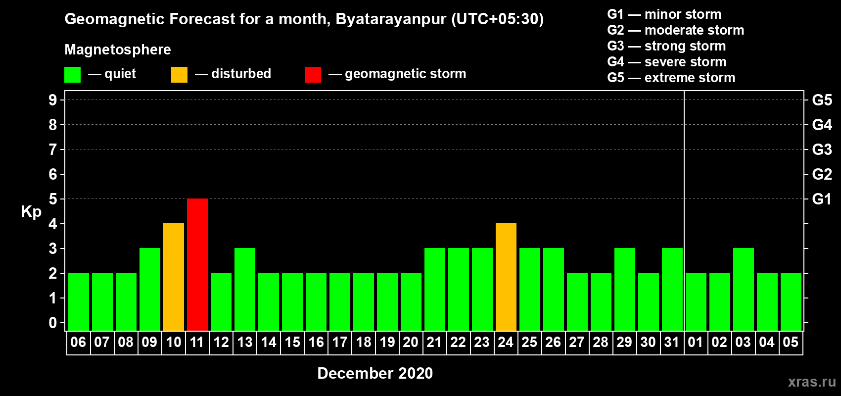 Geomagnetic storm forecast in Byatarayanpur for Dec 06, 2020