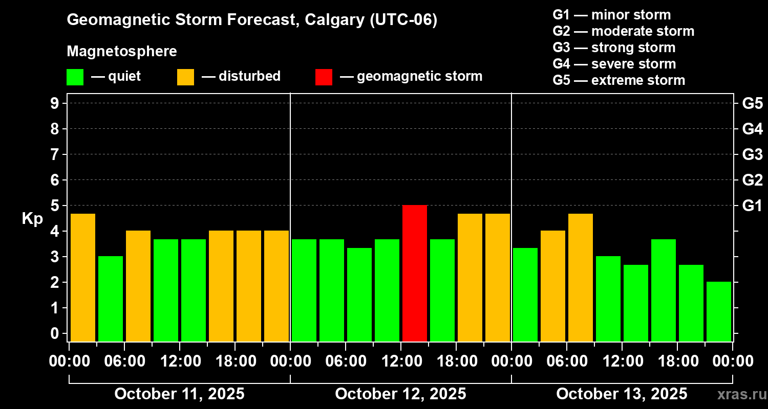 Geomagnetic storm forecast in Calgary for Oct 11, 2025