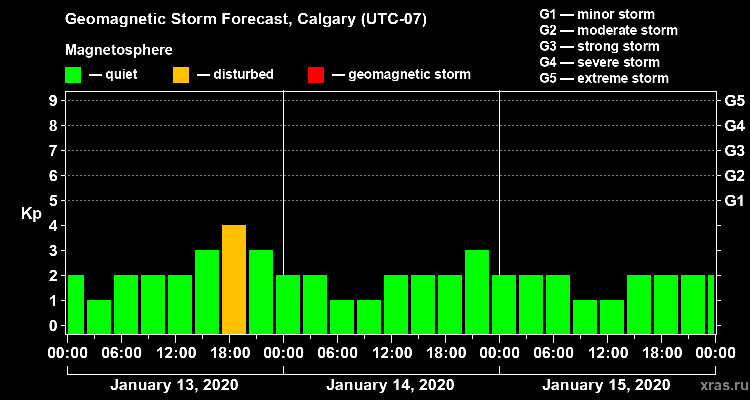 Geomagnetic storm forecast in Calgary for Jan 13, 2020