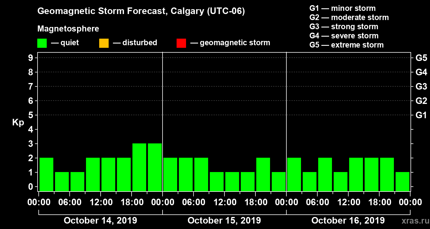 Geomagnetic storm forecast in Calgary for Oct 14, 2019