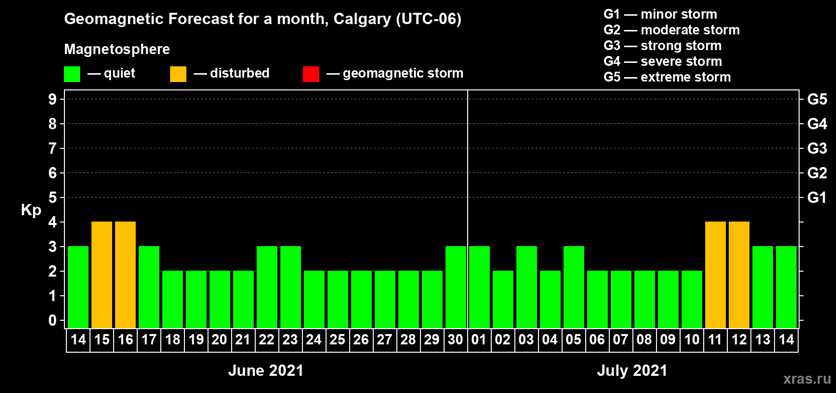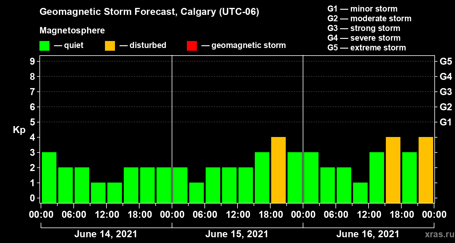 Geomagnetic storm forecast in Calgary for Jun 14, 2021