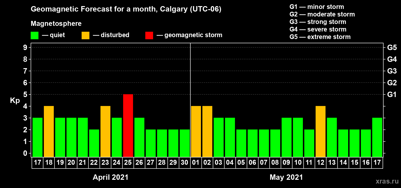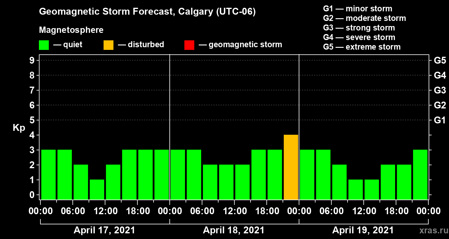 Geomagnetic storm forecast in Calgary for Apr 17, 2021