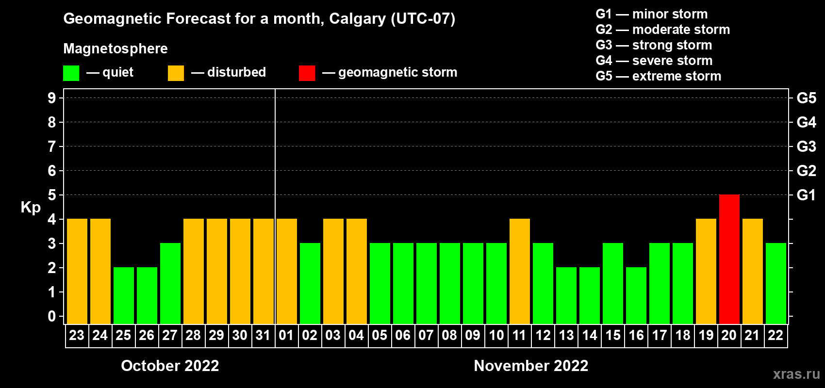 Geomagnetic storm forecast in Calgary for Oct 23, 2022