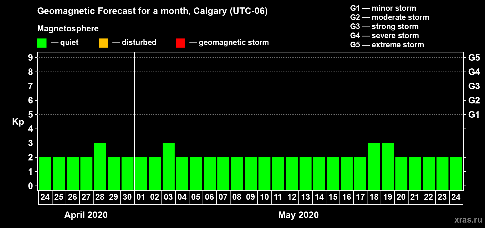 Geomagnetic storm forecast in Calgary for Apr 24, 2020