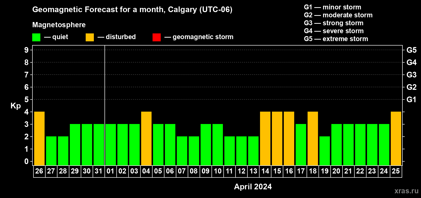 Geomagnetic storm forecast in Calgary for Mar 26, 2024