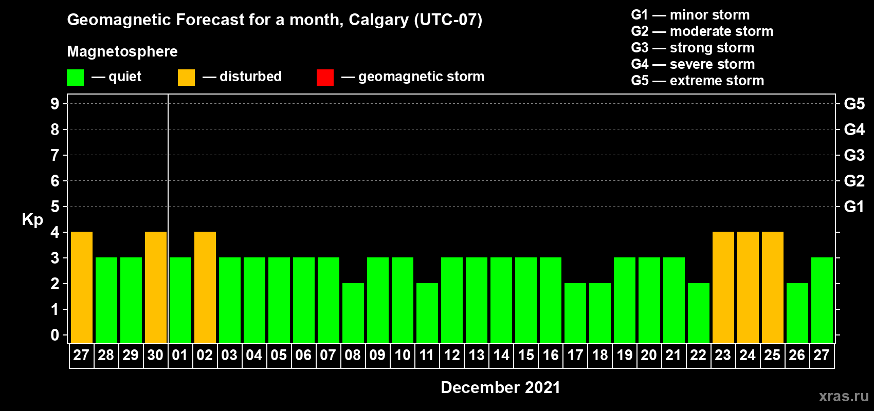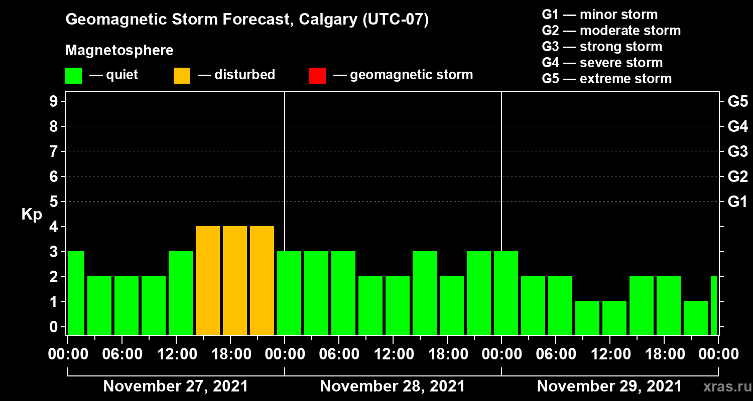 Geomagnetic storm forecast in Calgary for Nov 27, 2021