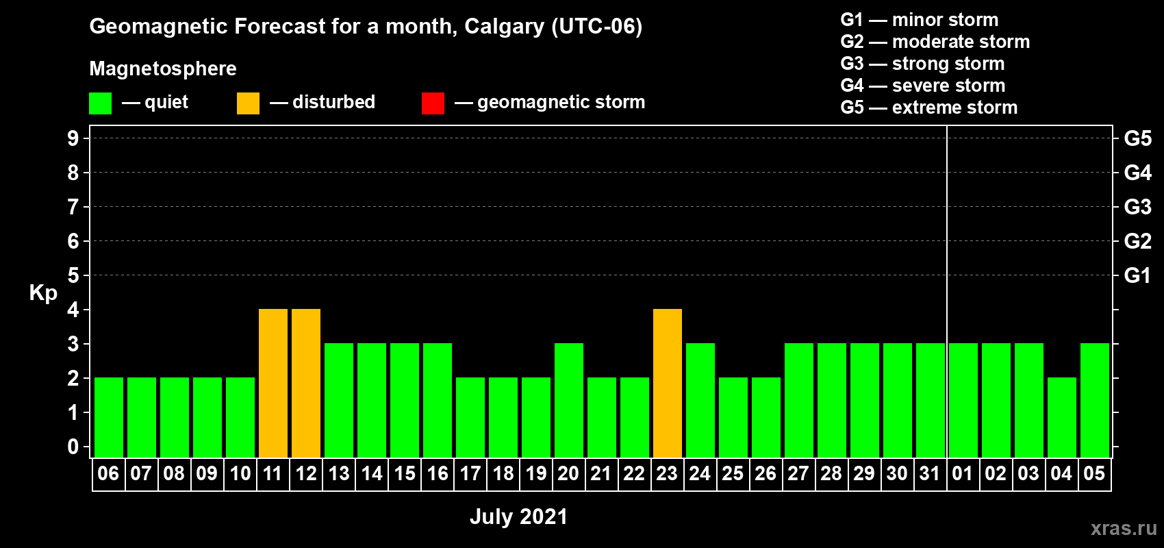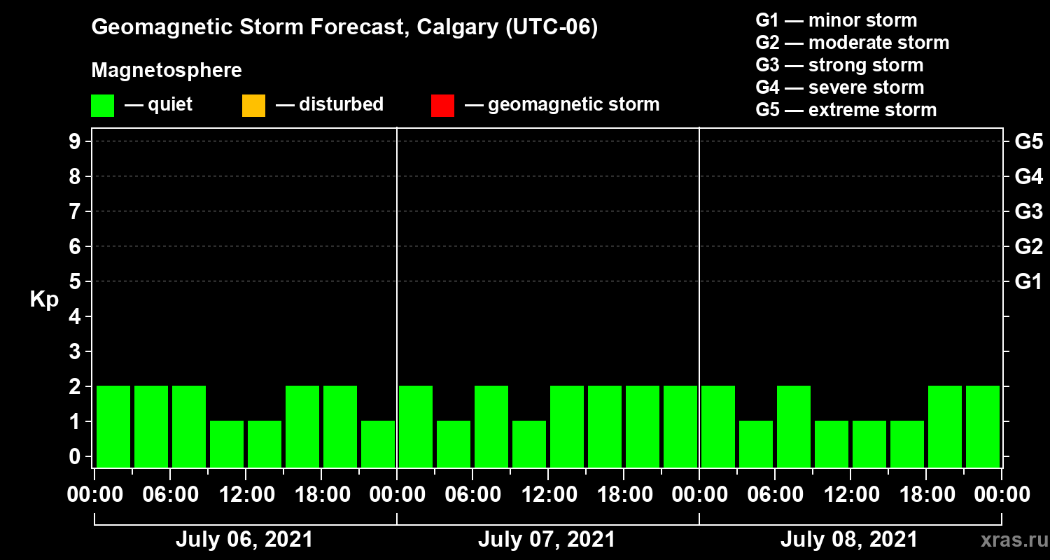 Geomagnetic storm forecast in Calgary for Jul 06, 2021