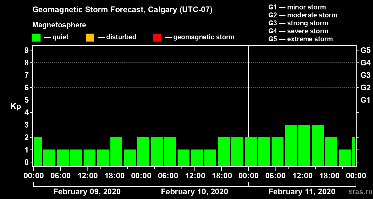 Geomagnetic storm forecast in Calgary for Feb 09, 2020