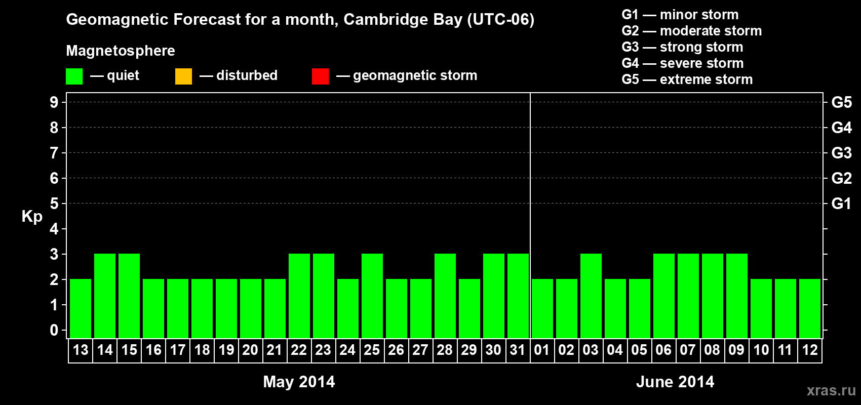 Geomagnetic storm forecast in Cambridge Bay for May 13, 2014