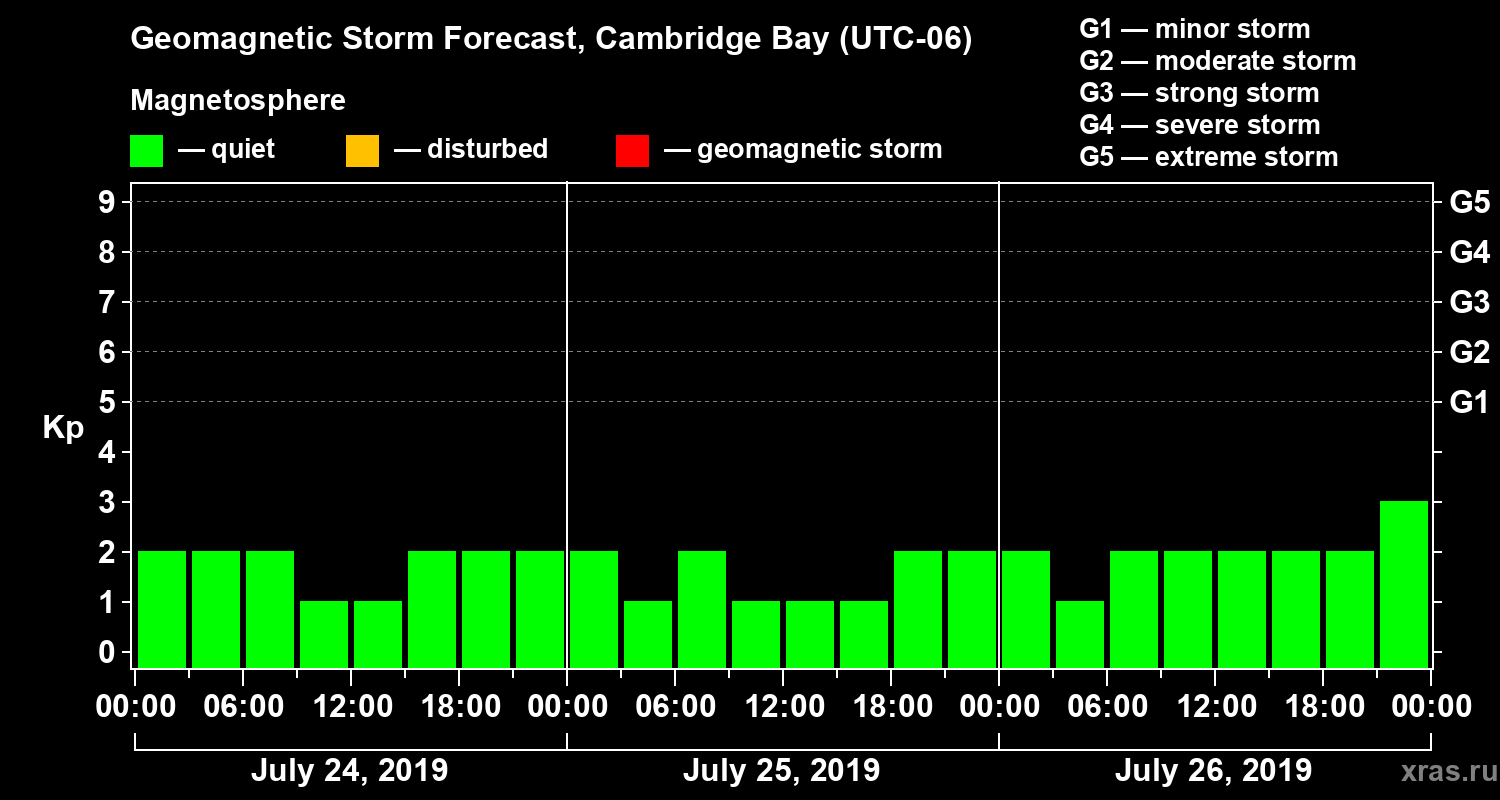 Geomagnetic storm forecast in Cambridge Bay for Jul 24, 2019