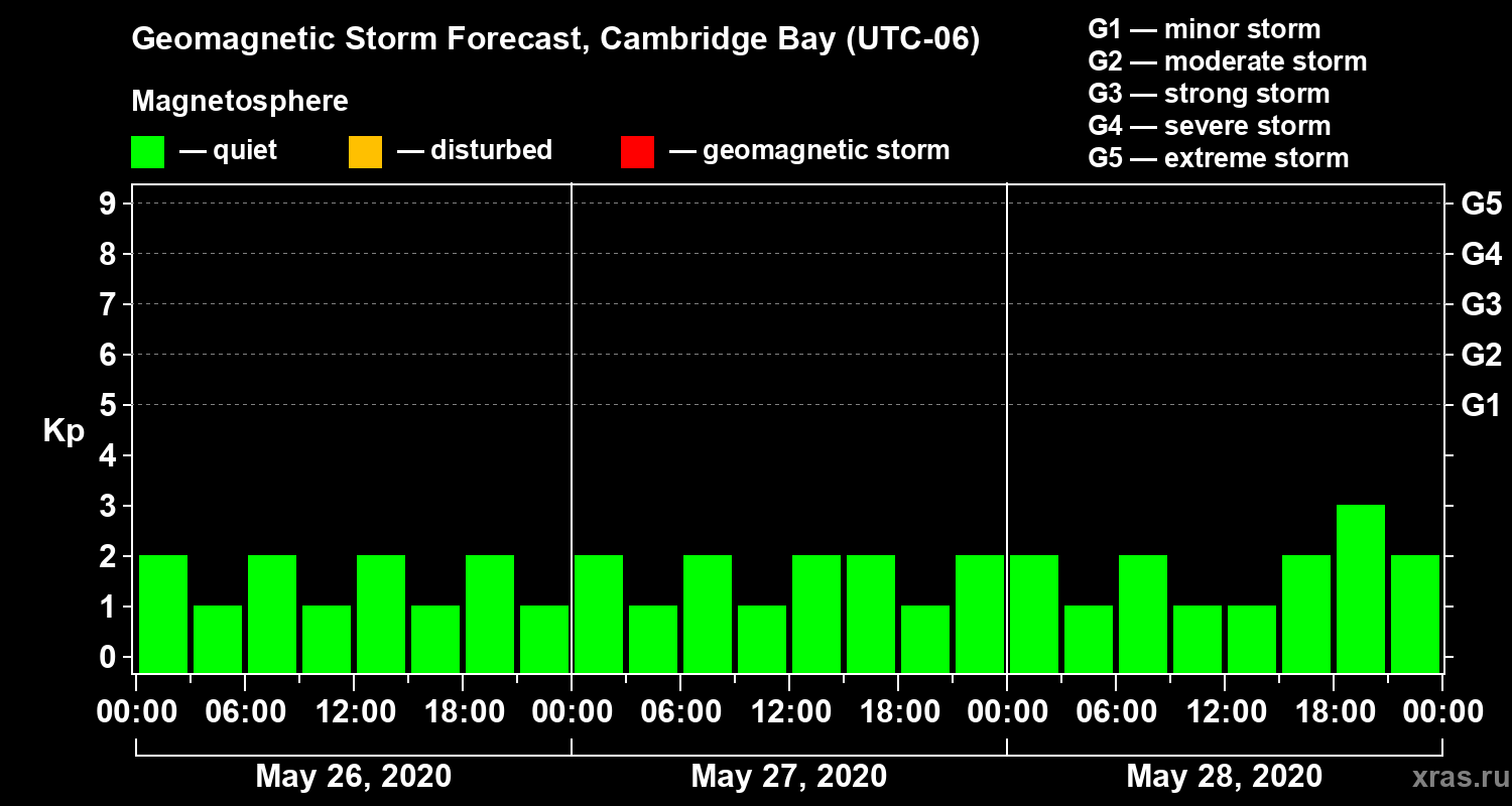 Geomagnetic storm forecast in Cambridge Bay for May 26, 2020