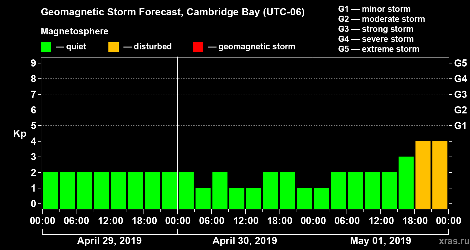 Geomagnetic storm forecast in Cambridge Bay for Apr 29, 2019