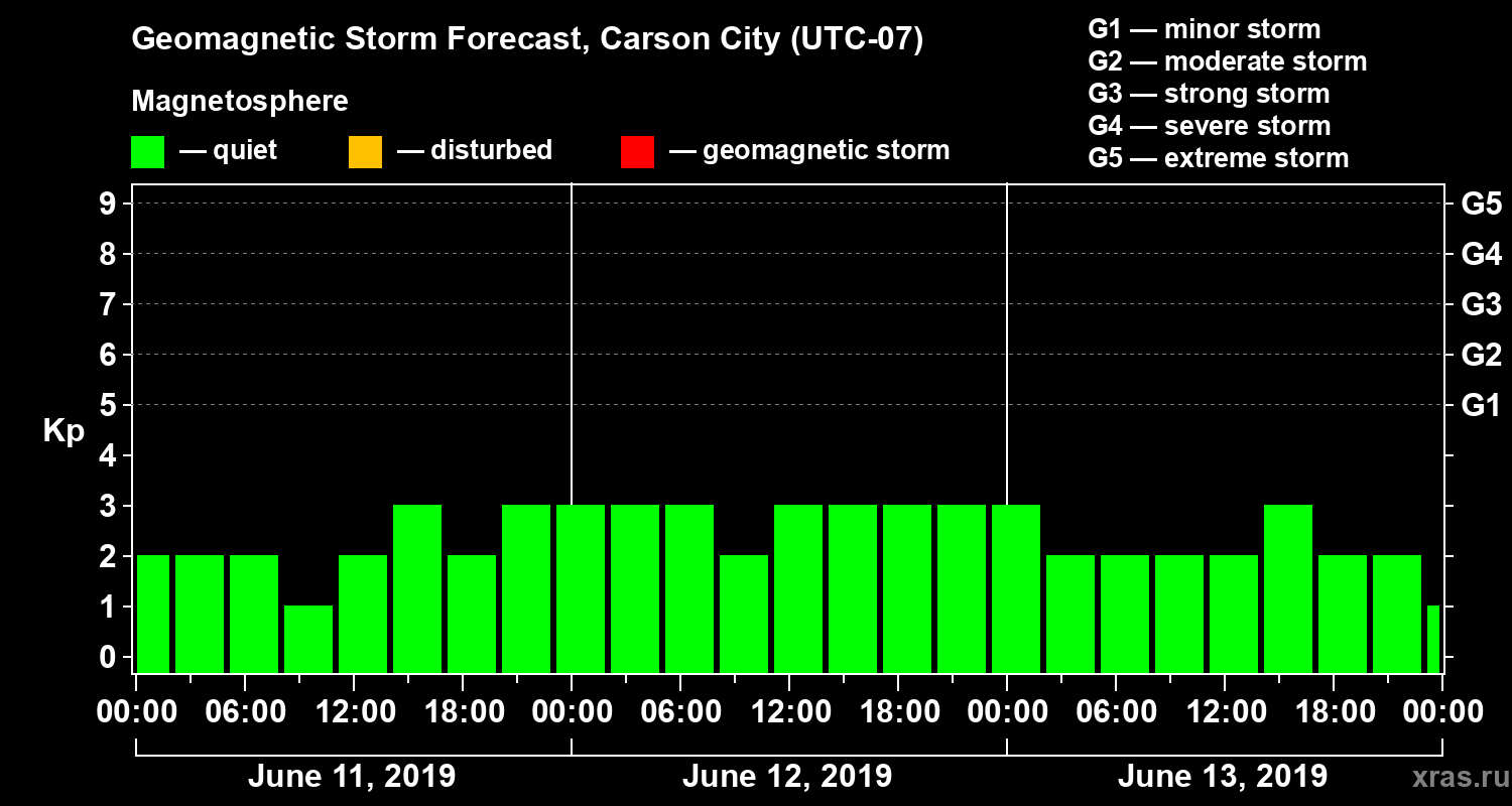 Geomagnetic storm forecast in Carson City for Jun 11, 2019