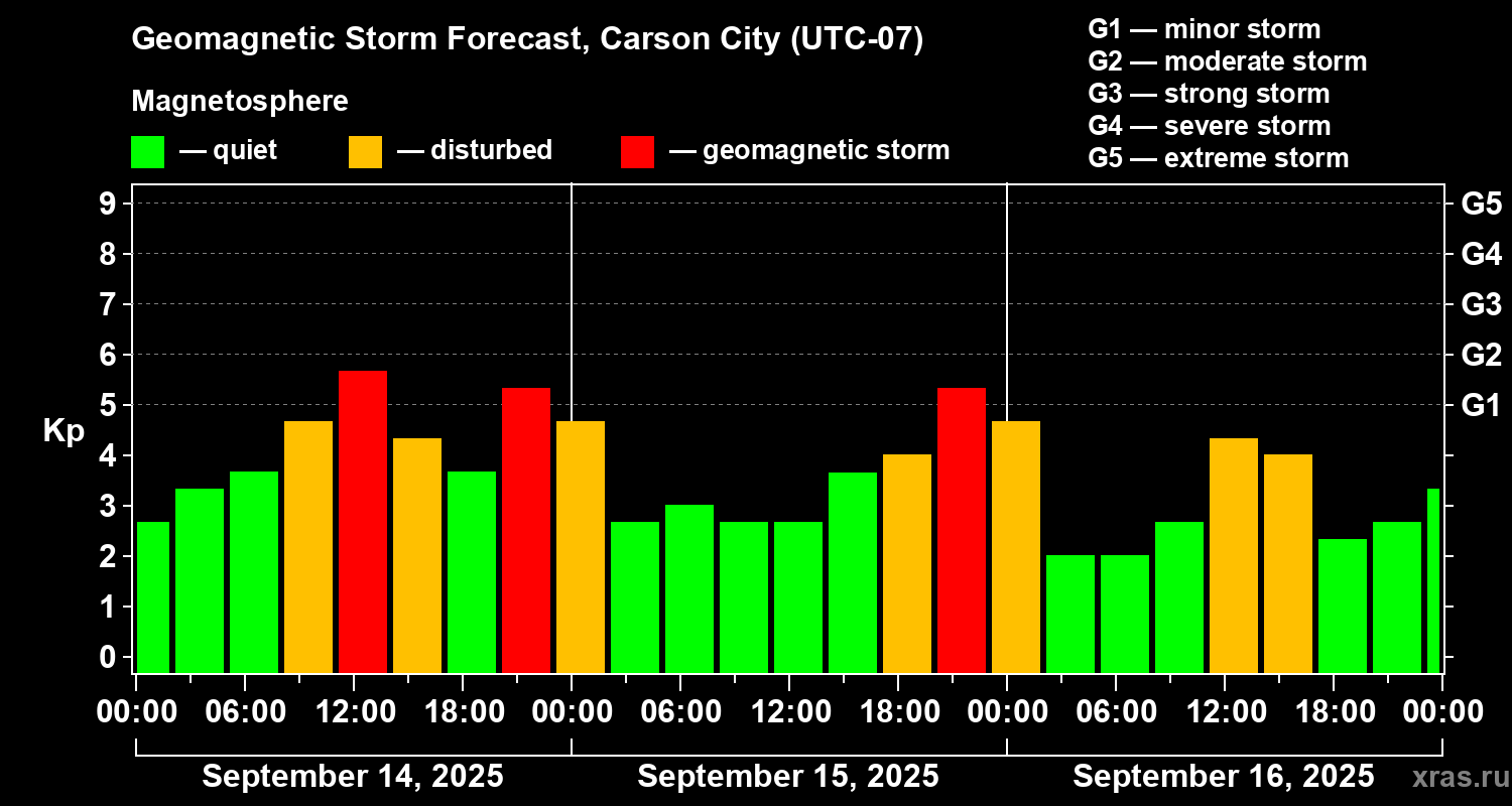 Geomagnetic storm forecast in Carson City for Sep 14, 2025