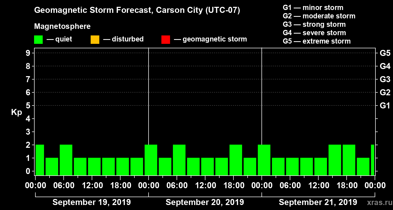 Geomagnetic storm forecast in Carson City for Sep 19, 2019