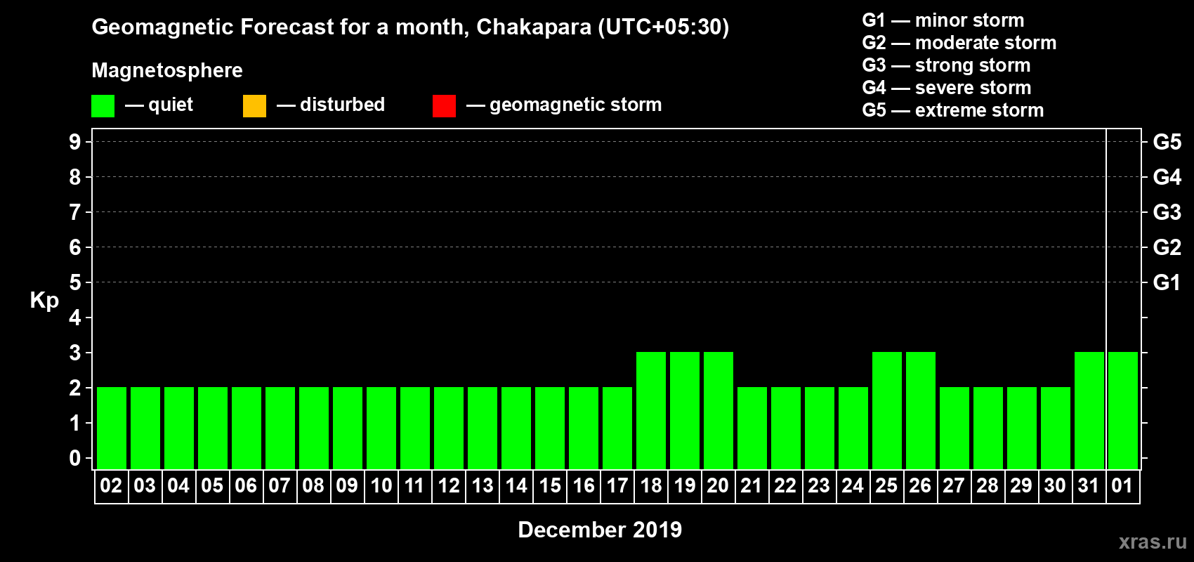Geomagnetic storm forecast in Chakapara for Dec 02, 2019